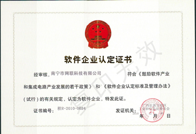 《軟件企業(yè)認(rèn)定證書(shū)》證書(shū)編號(hào):桂R-2010-0024《軟件產(chǎn)品登記證書(shū)》證書(shū)編號(hào):桂DGY-2010-0058